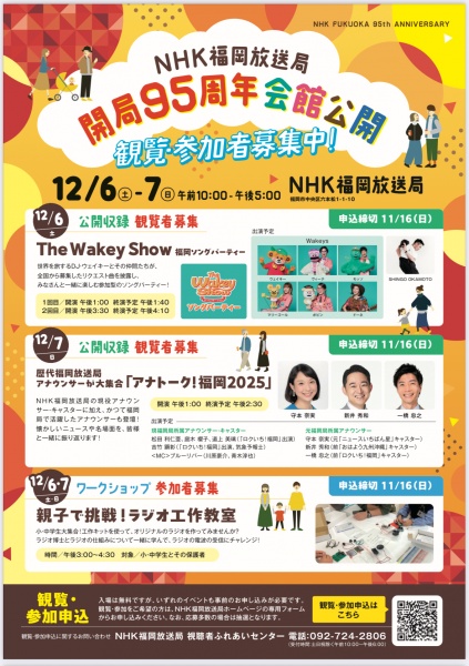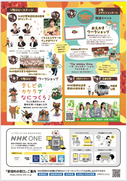12/7(日)NHK福岡開局95周年イベント 13:30〜 40分間 エントランス 無料 ギター 縦石佳久、くちぶえ 分山貴美子