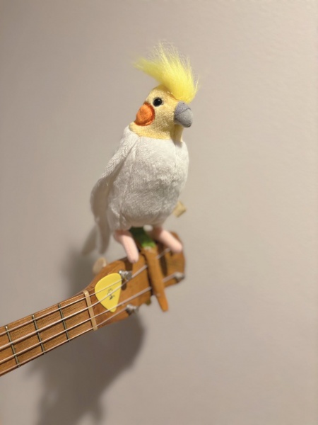ニューフェイス君がウクレレに止まった