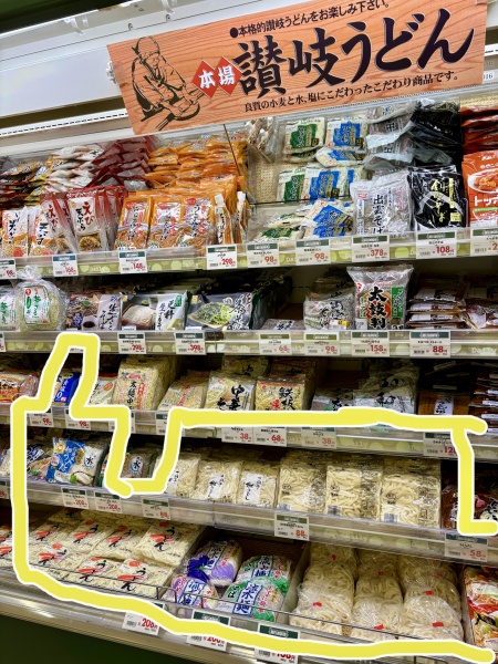 土産物屋じゃなくスーパーに行ってみたくて。冷蔵庫コーナーのうどんが多い‼️